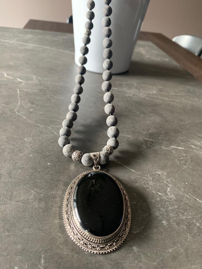 Necklace: horn and silver 925% Pendant: Onix and silver 925% Price: 330 €
